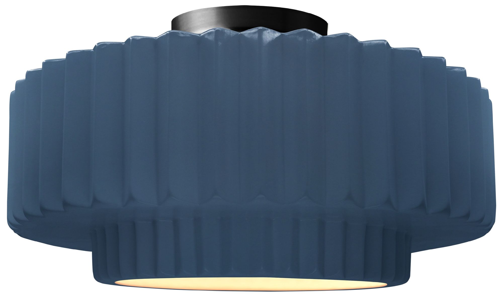 16.5"W Midnight/White Frame Matte Black Large Tier Pleated Semi.Flush