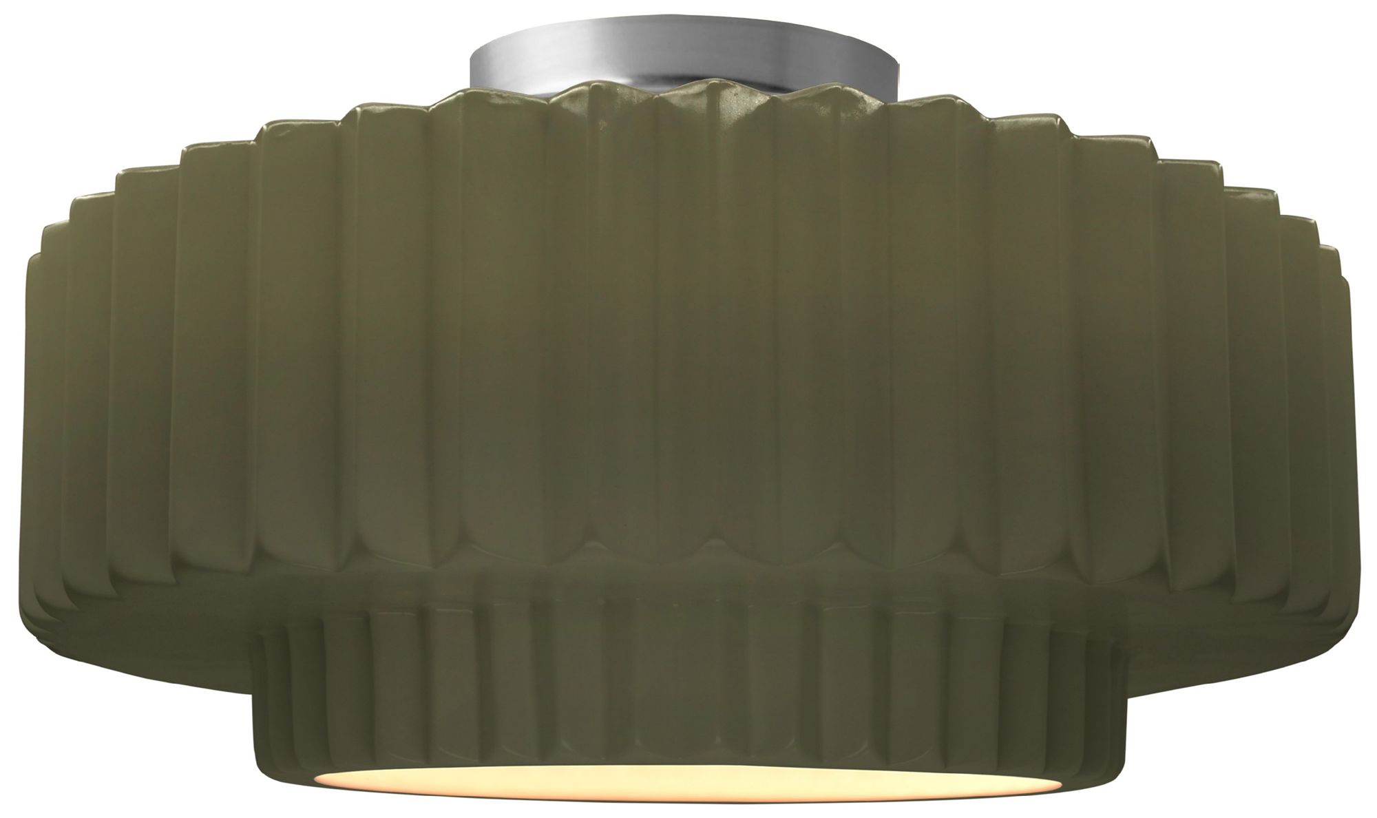 Radiance 16.5"W Matte Green Frame Nickel Large Tier Pleated Semi.Flush