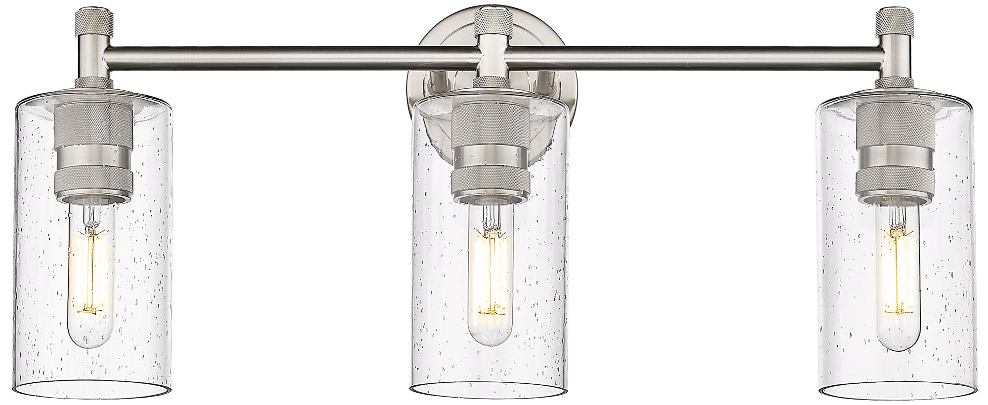 Crown Point 24" Wide 3 Light Satin Nickel Bath Light With Seedy Shade