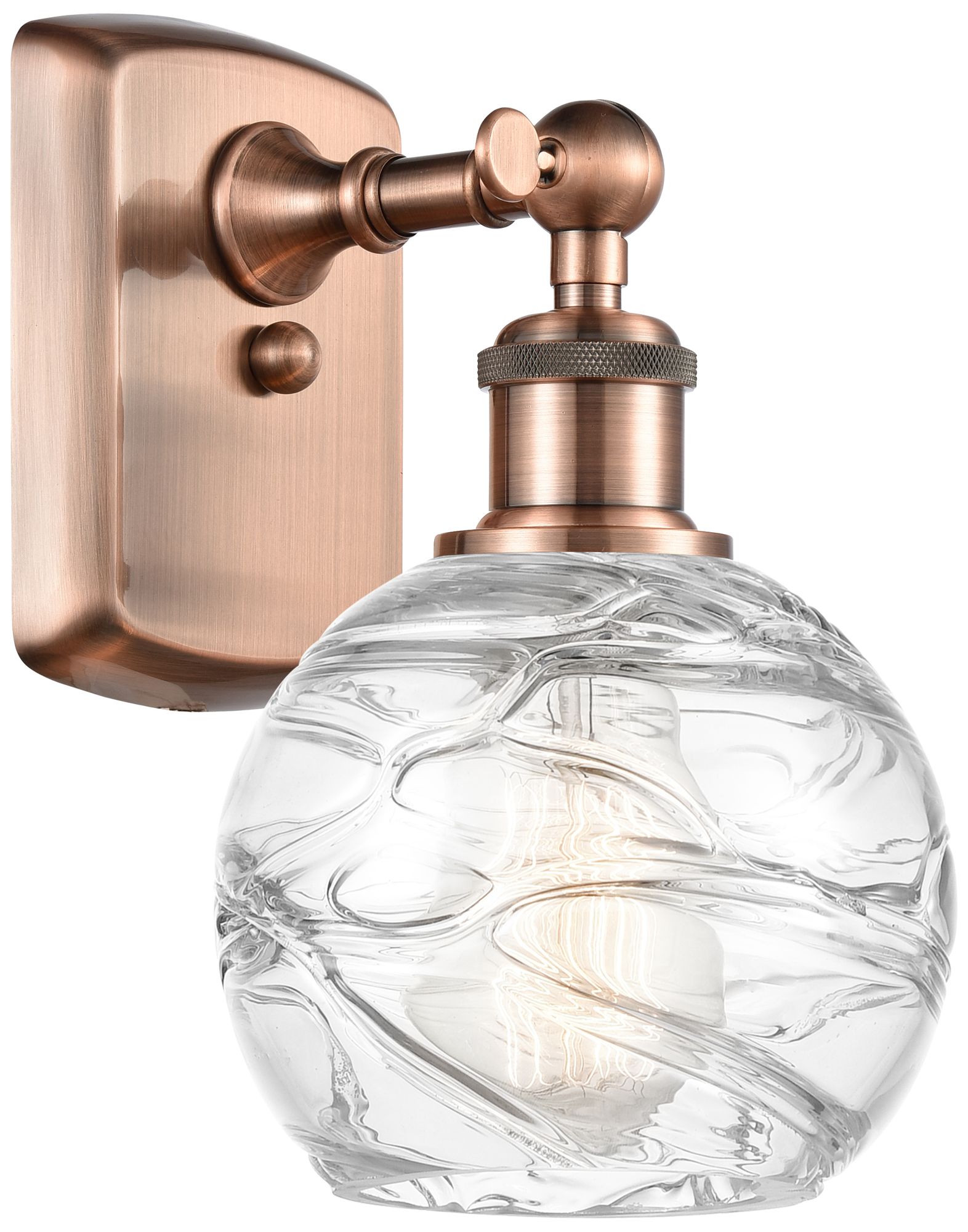 Athens 6" Antique Copper Sconce w/ Clear Deco Swirl Shade