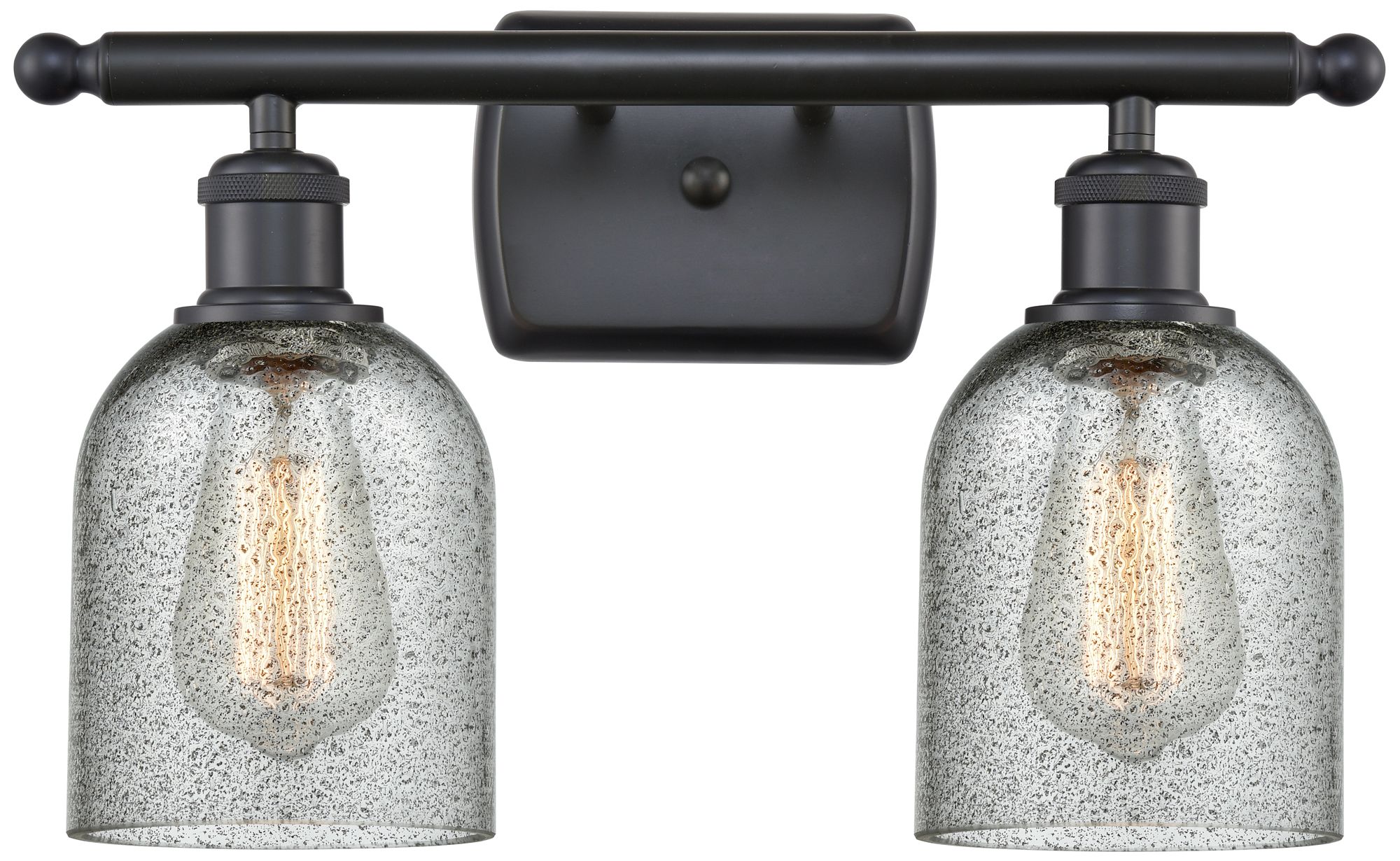 Caledonia 2 Light 16" LED Bath Light - Matte Black - Charcoal Shade