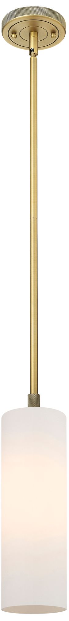Crown Point 3.88"W Brushed Brass Stem Hung Pendant With Matte White Sh