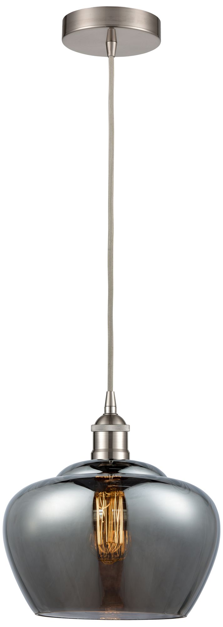 Edison Fenton 11" Brushed Satin Nickel Mini Pendant w/ Plated Smoke Sh