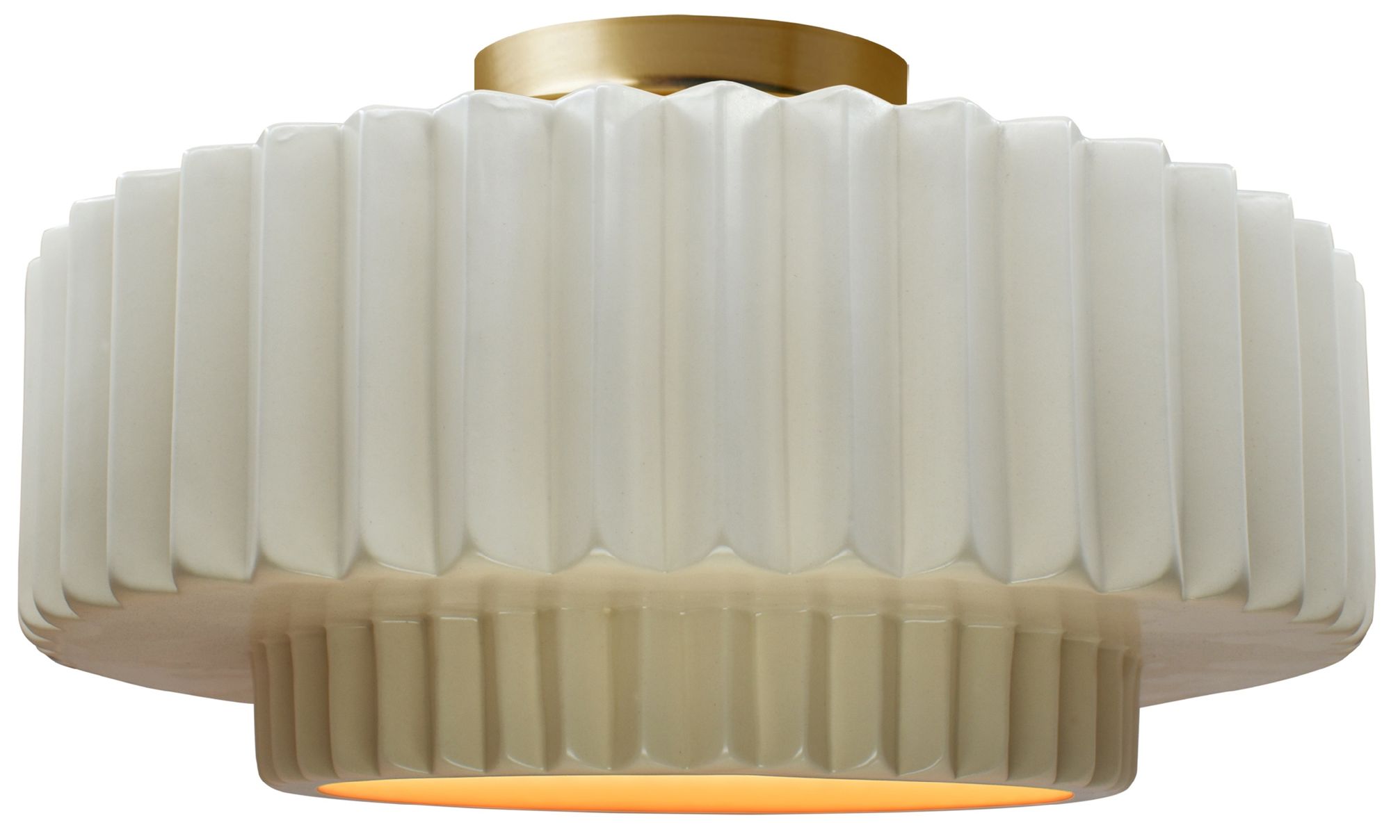 16.5"W Matte White/Gold Frame Brushed Brass Large Tier Pleated Semi.Fl