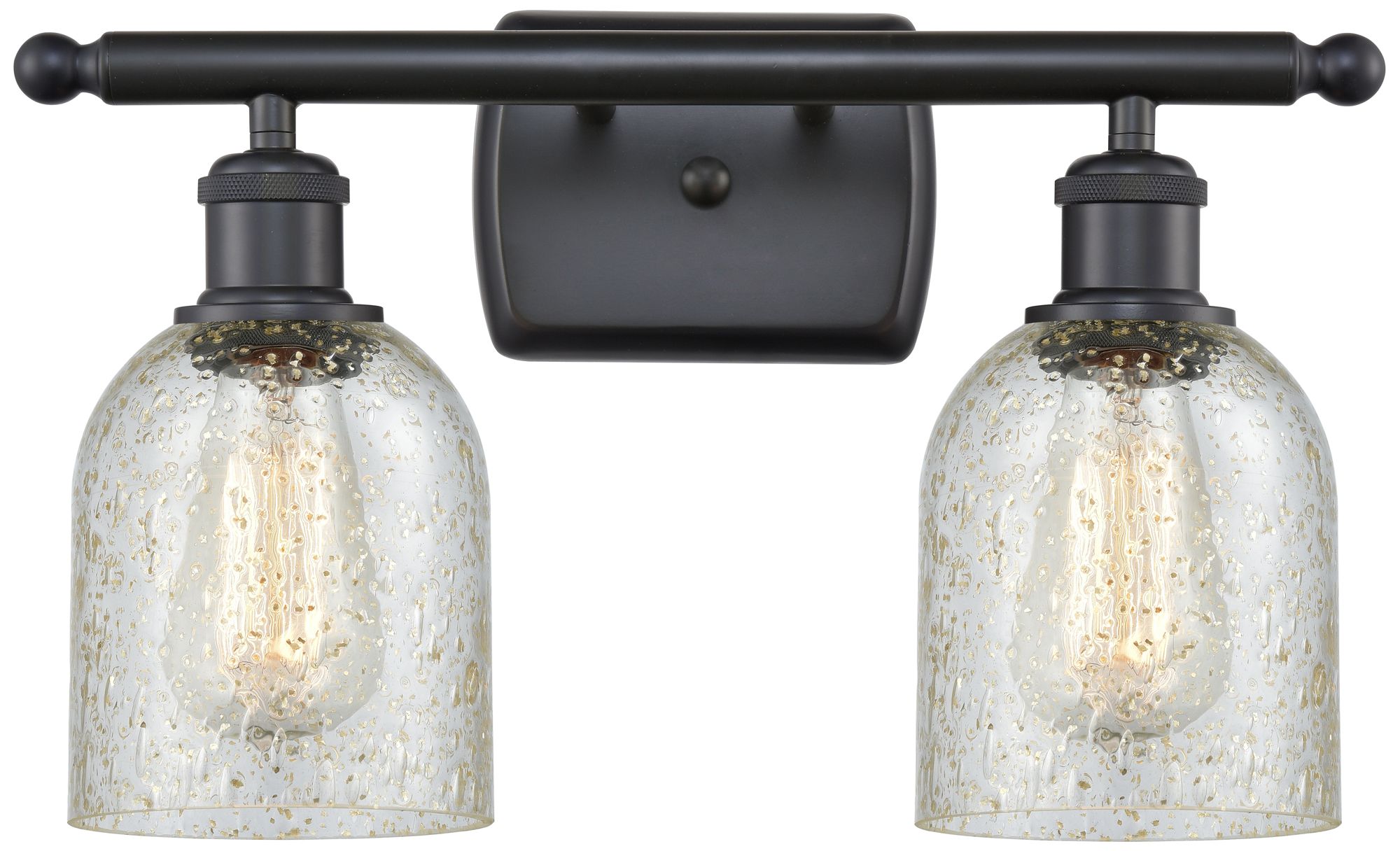 Caledonia 2 Light 16" LED Bath Light - Matte Black - Mica Shade