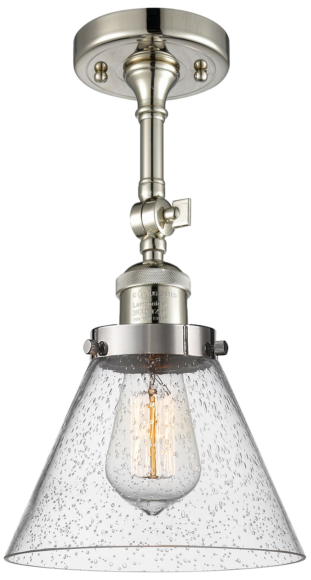 Franklin Restoration Cone 8" Polished Nickel Semi Flush w/ Seedy Shade