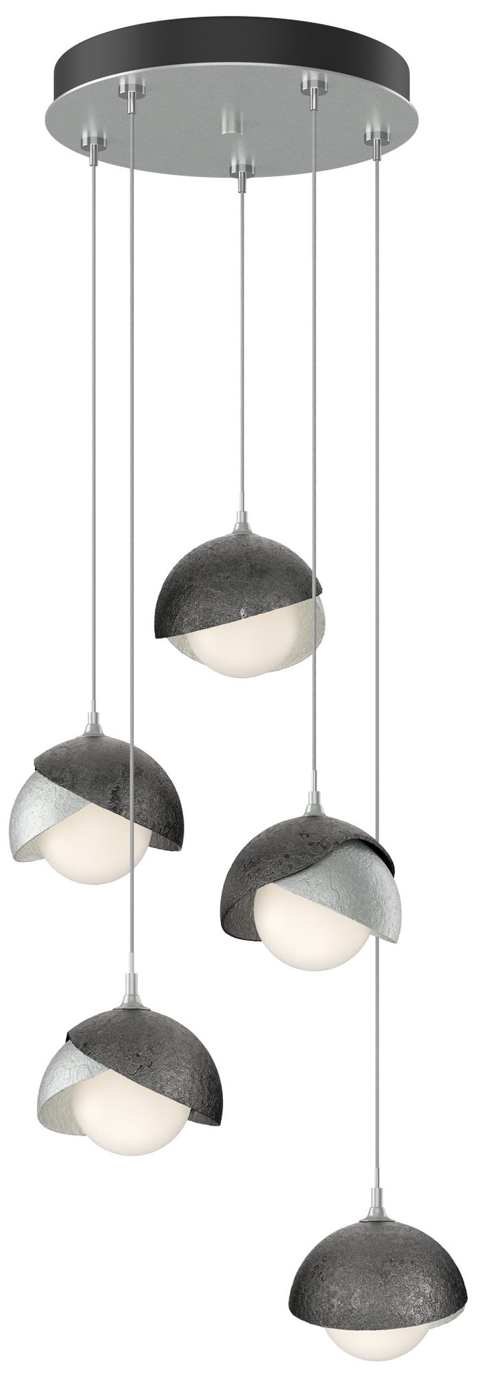 Brooklyn 16"W 5-Light Ink Accented Platinum Long Double Shade Pendant