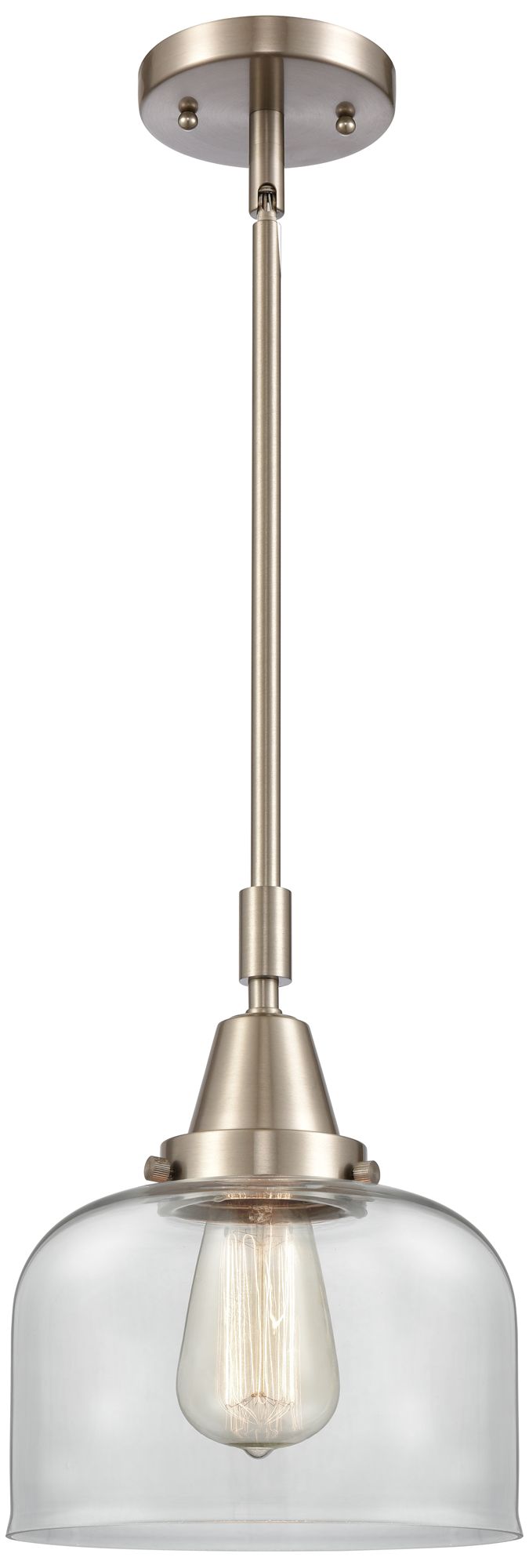 Caden Bell 8"W Brushed Satin Nickel Stem Hung Mini Pendant w/ Clear Sh