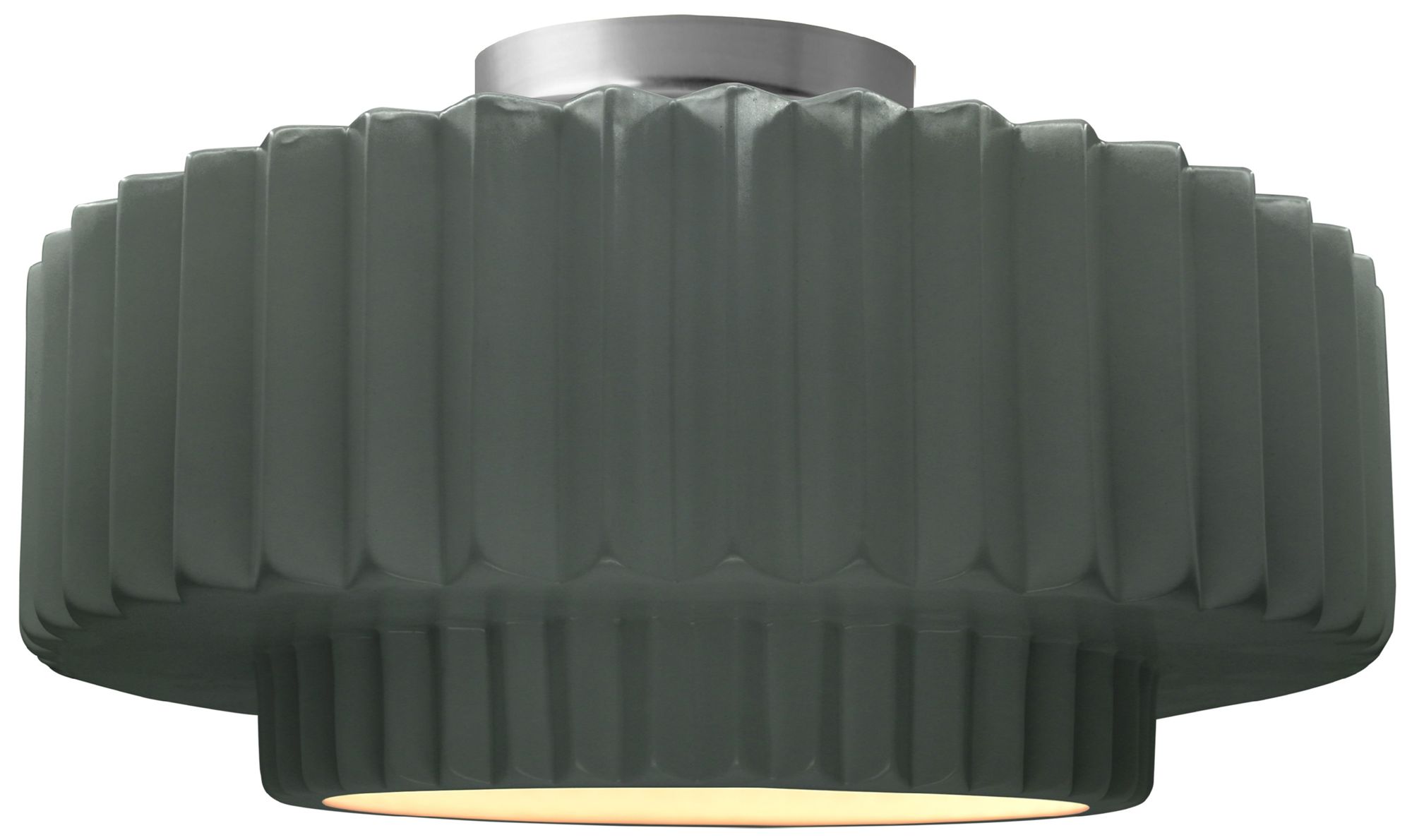 Radiance 16.5"W Pewter Green Frame Nickel Large Tier Pleated LED Semi.