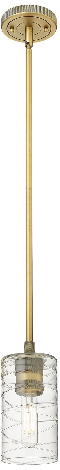Crown Point 3.88"W Brushed Brass Stem Hung Pendant With Deco Swirl Sha