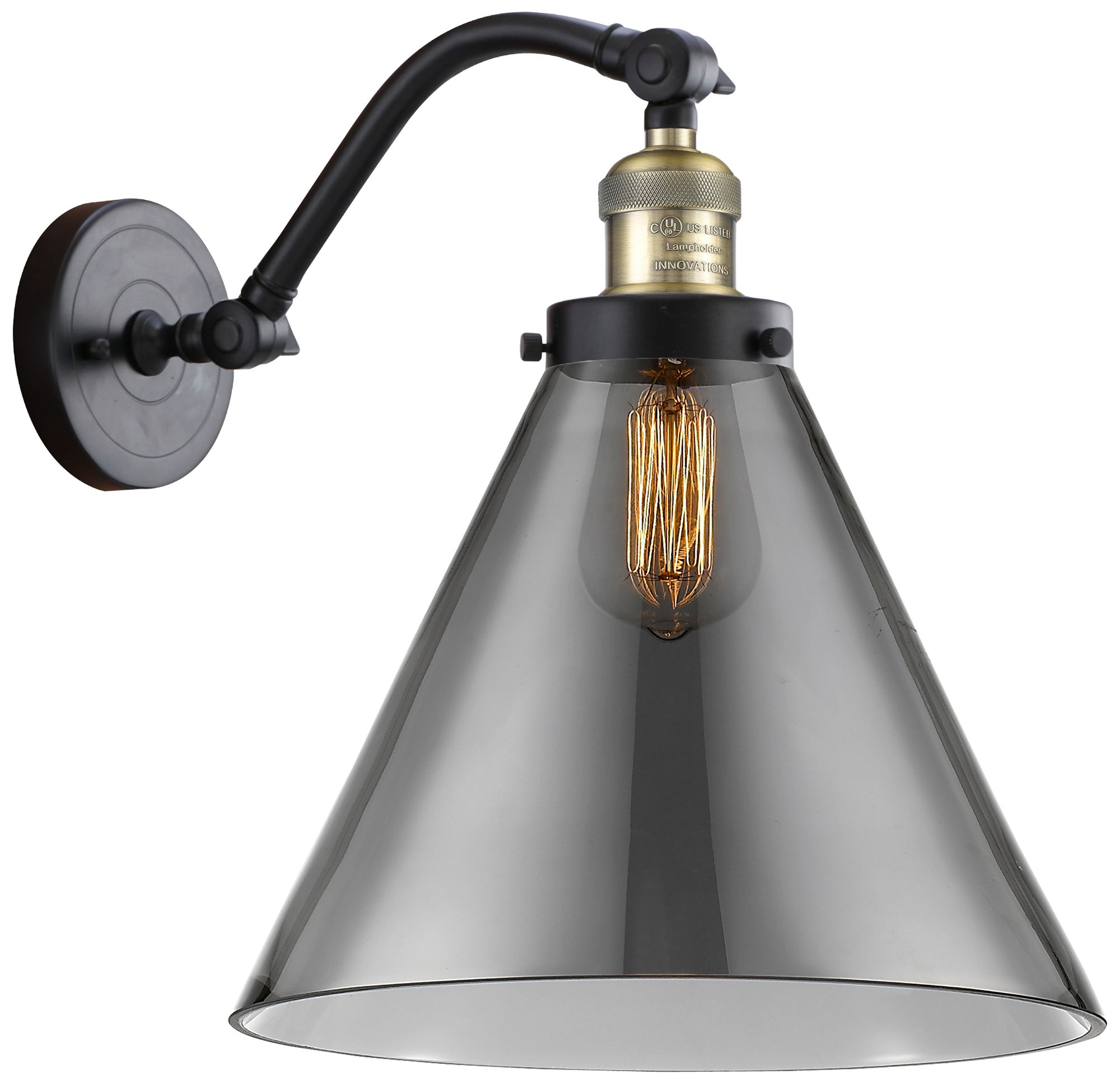 Cone 14" High Black Brass Sconce w/ Plated Smoke Shade
