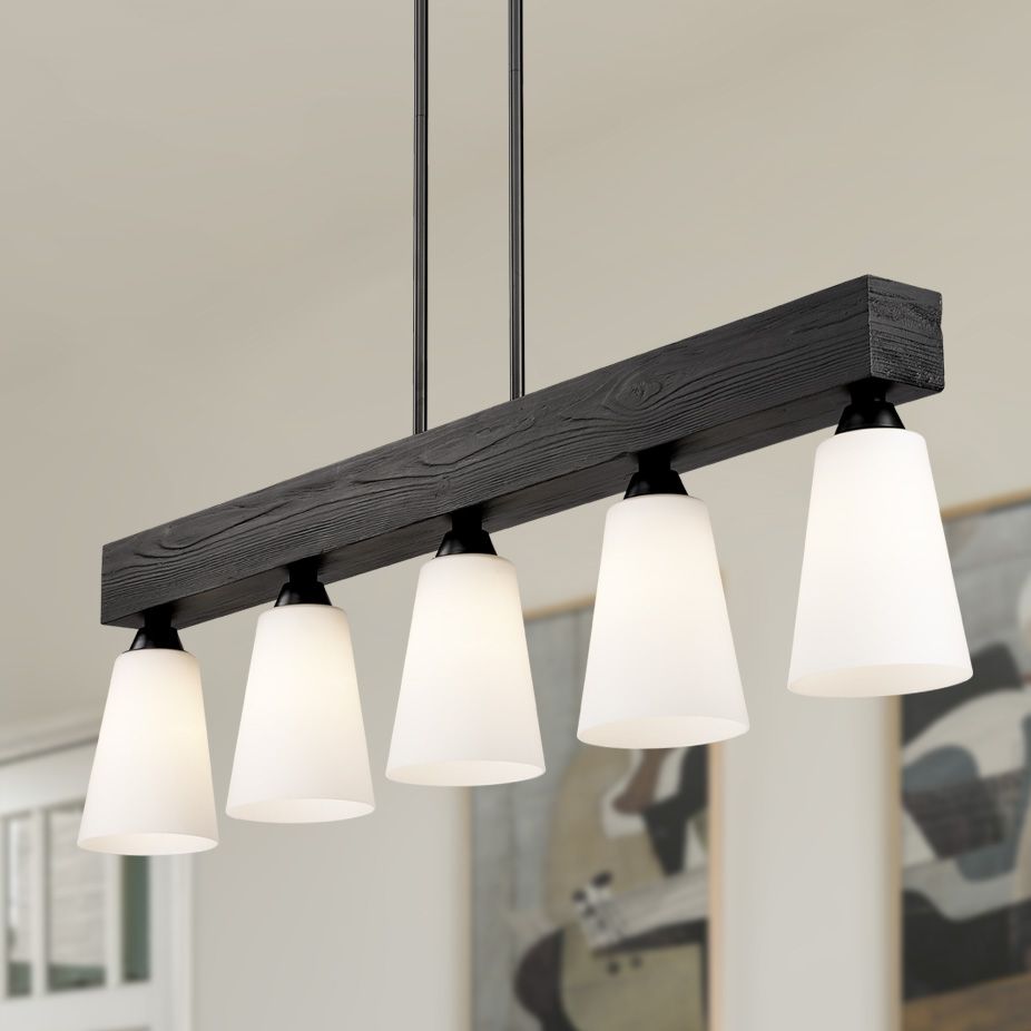 Neela 41.625" Wide 5-Light Matte Black Linear Pendant with Opal Glass