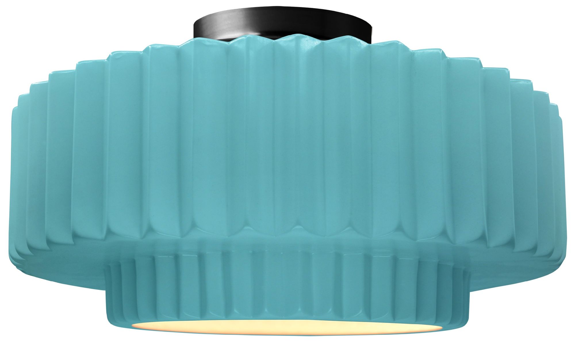 16.5"W Reflecting Pool Frame Matte Black Large Tier Pleated LED Semi.F