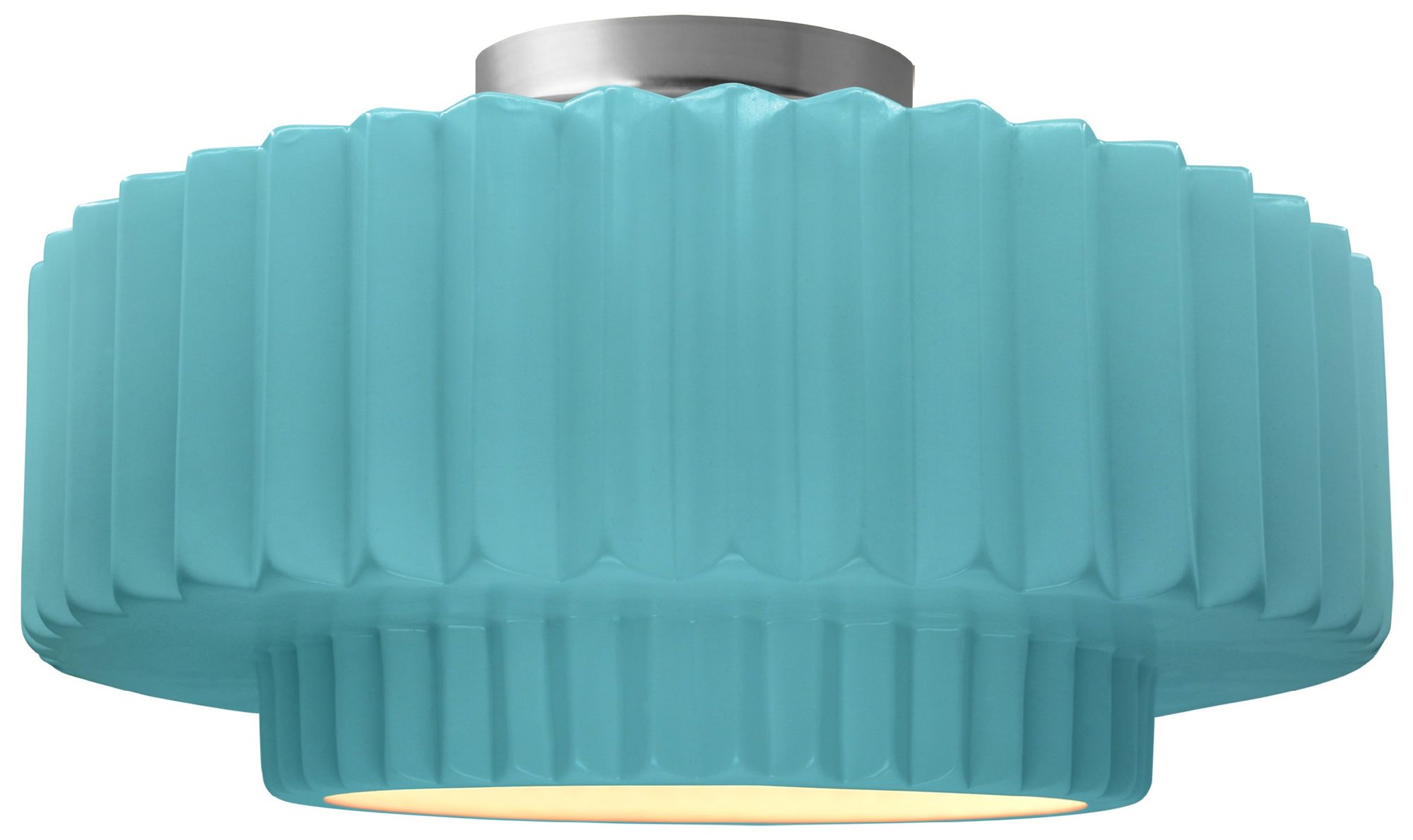 16.5"W Reflecting Pool Frame Nickel Large Tier Pleated LED Semi.Flush