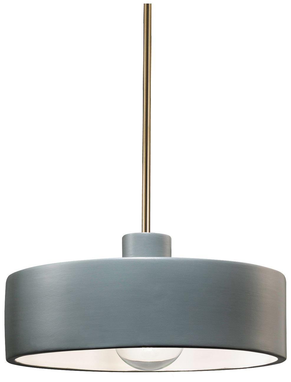 Radiance 12" Wide Antique Brass Pewter Green Dish Stemmed Pendant
