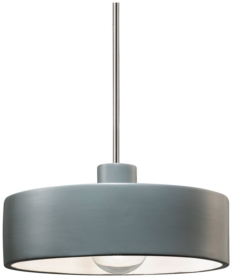Radiance 12" Wide Polished Chrome Pewter Green Dish Stemmed Pendant