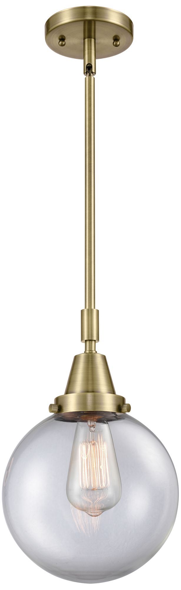 Caden Beacon 8" Wide Antique Brass Stem Hung Mini Pendant w/ Clear Sha
