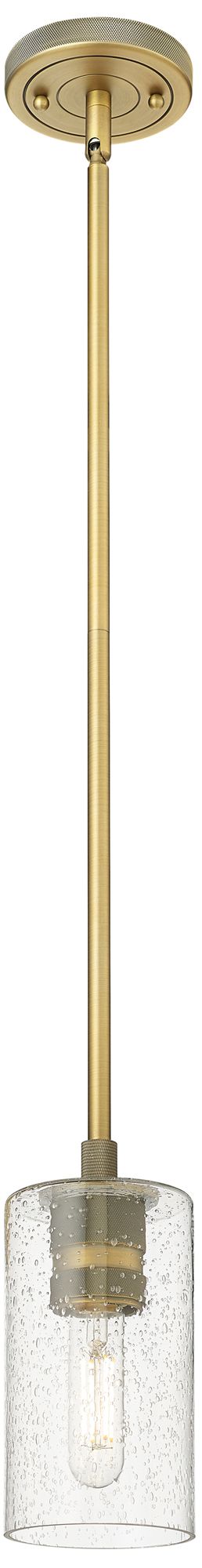 Crown Point 3.88" Wide Brushed Brass Stem Hung Pendant With Seedy Shad