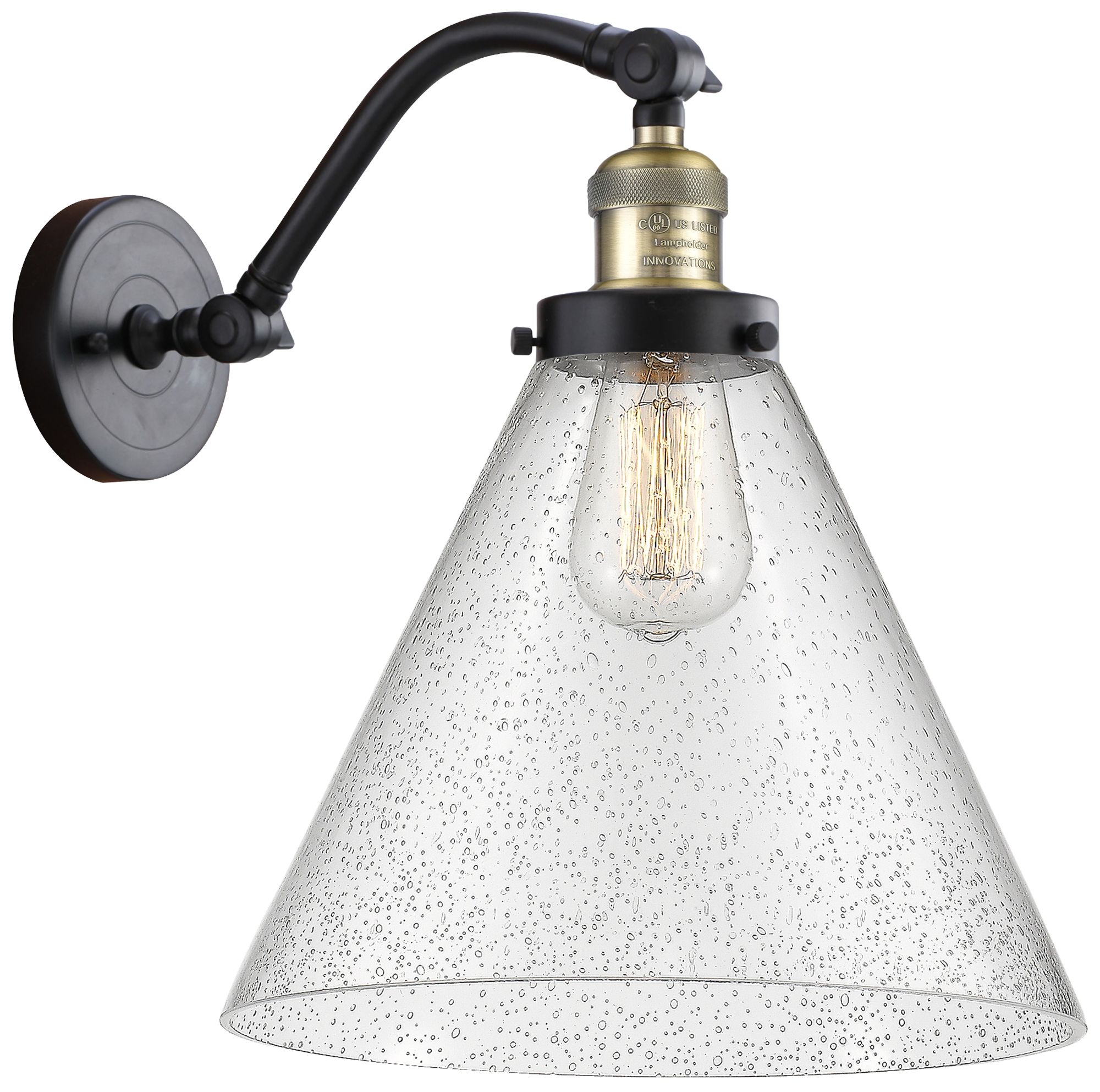 Cone 14" High Black Brass Sconce w/ Seedy Shade