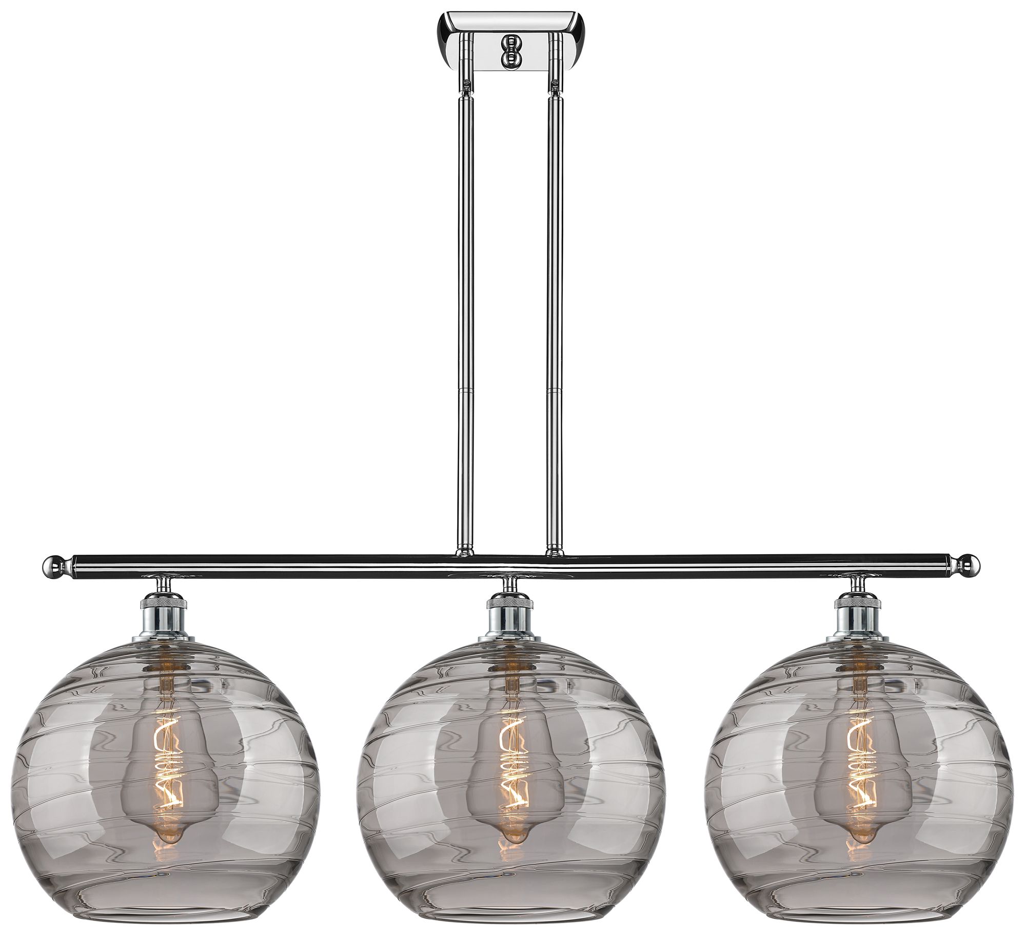Athens 38.5"W 3-Light Chrome Stem Island Light w/ Smoke Swirl Shade