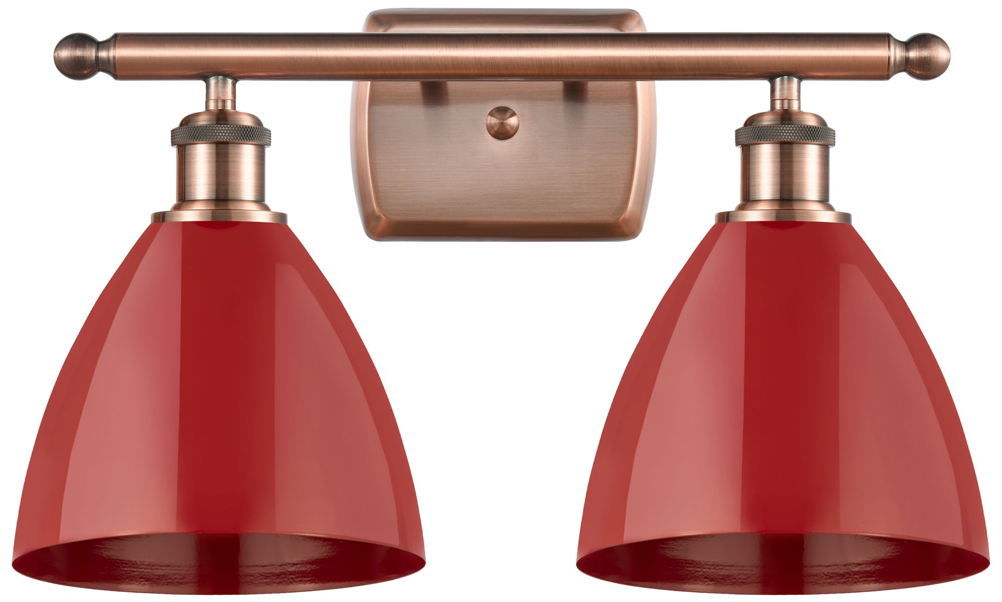 Plymouth Dome 17.5" Wide 2 Light Copper Bath Vanity Light w/ Red Shade