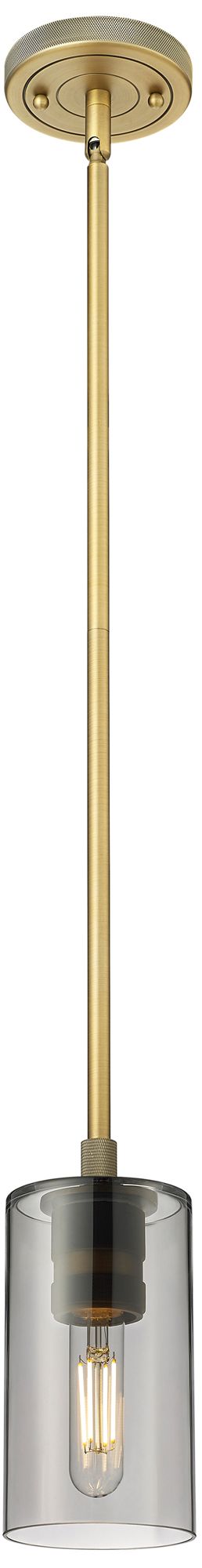 Crown Point 3.88"W Brushed Brass Stem Hung Pendant With Plated Smoke S