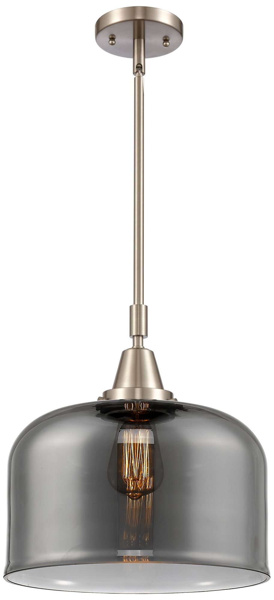 Caden Bell 12"W Brushed Nickel Stem Hung Mini Pendant w/ Smoke Shade