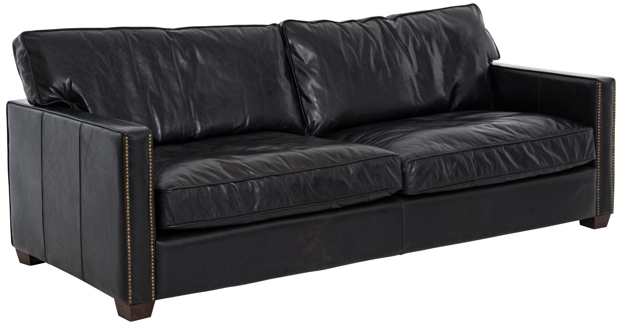 Larkin Old Saddle 88" Wide Black Top Grain Leather Sofa