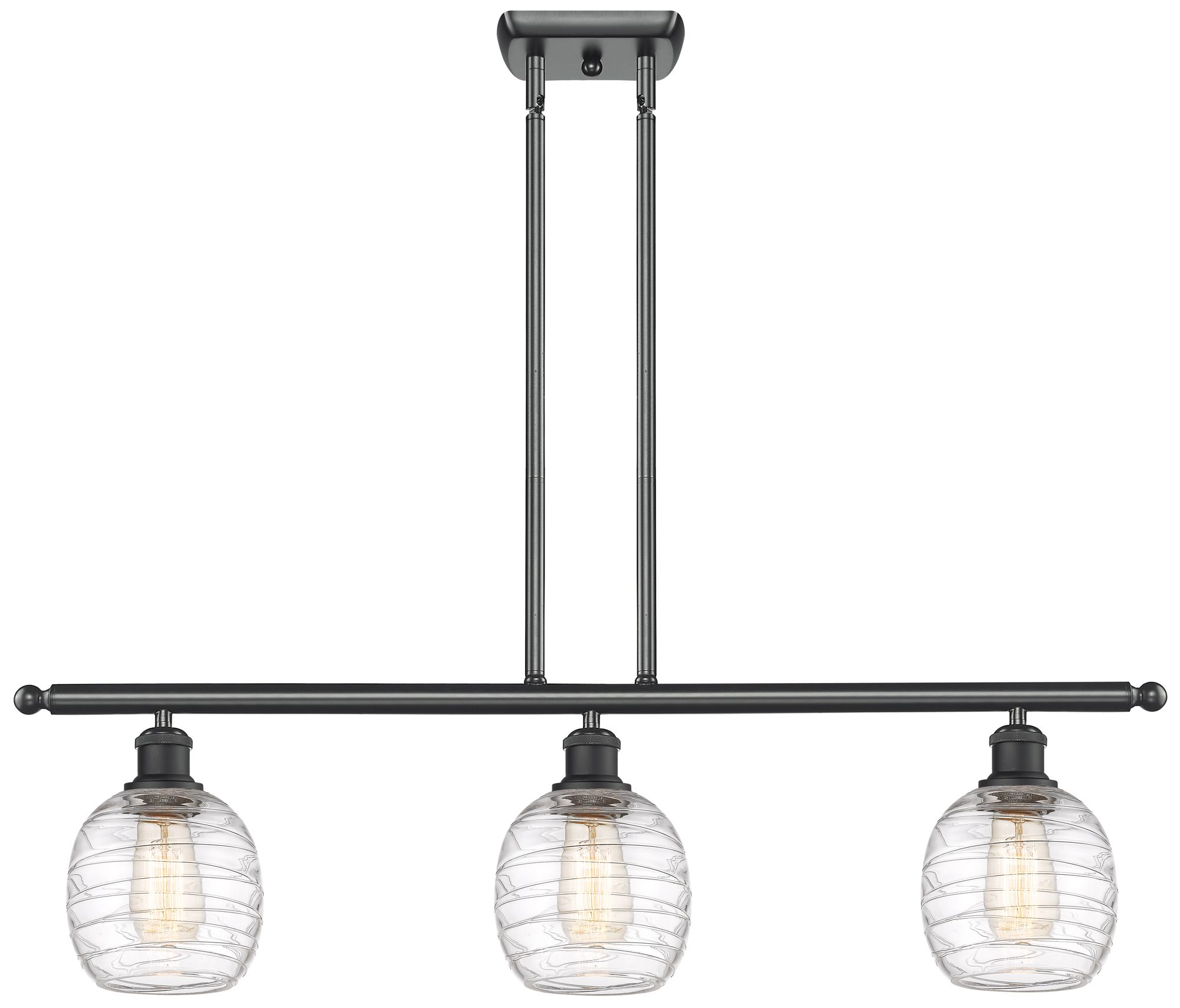 Belfast 3 Light 36" LED Island Light - Matte Black - Deco Swirl Shade