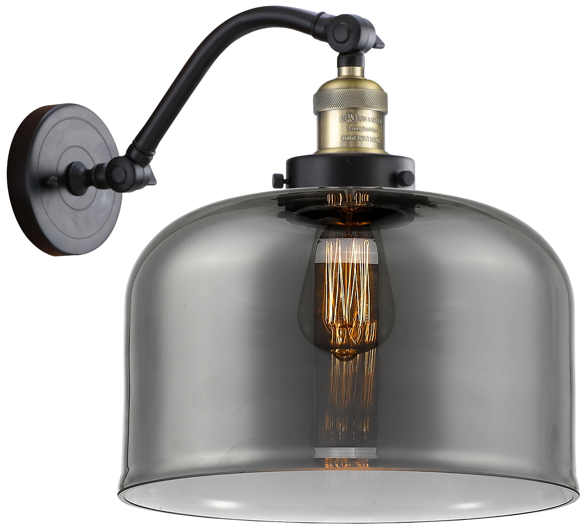 Bell 13" High Black Brass Sconce w/ Plated Smoke Shade
