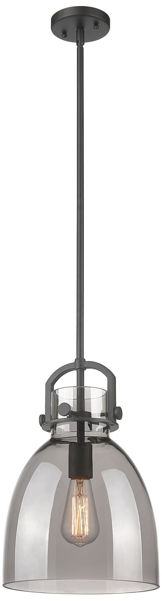 Newton Bell 10" Wide Stem Hung Matte Black Pendant With Smoke Shade