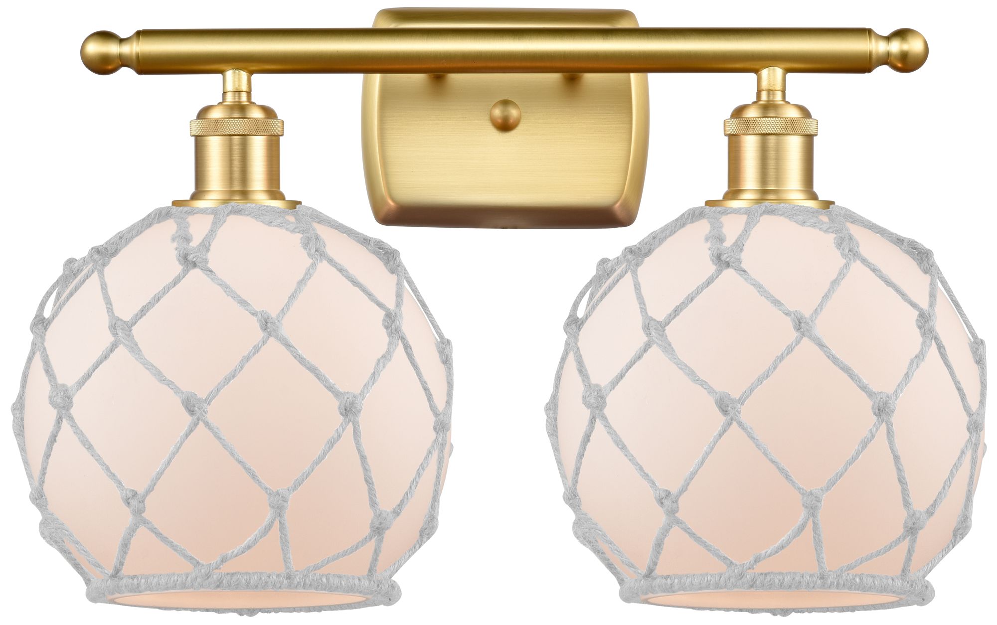 Farmhouse Rope 16"W 2 Light Gold Bath Light w/ White Rope Shade