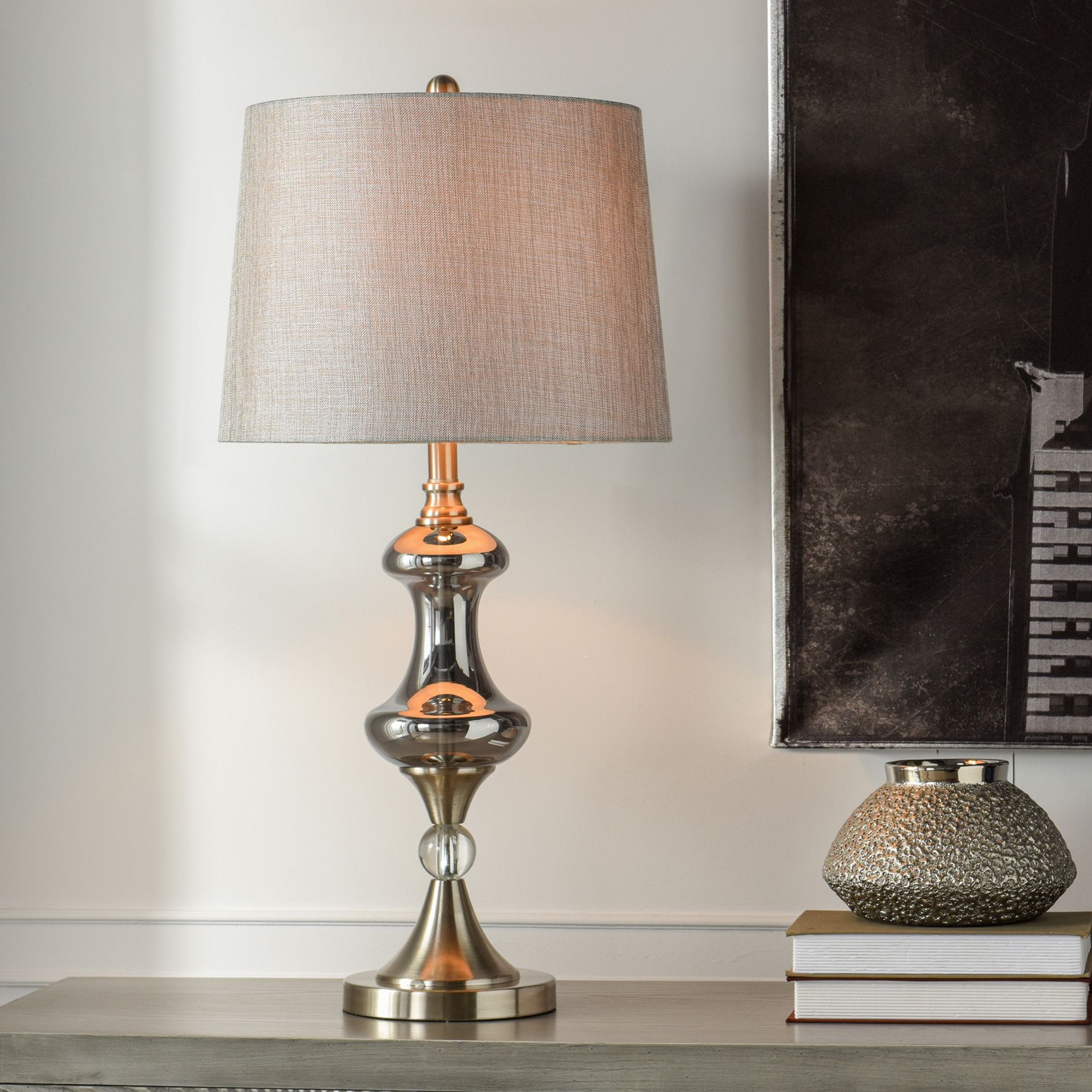 StyleCraft 31" High Brushed Nickel & Silver Glass Table Lamp w/ Grey Shade