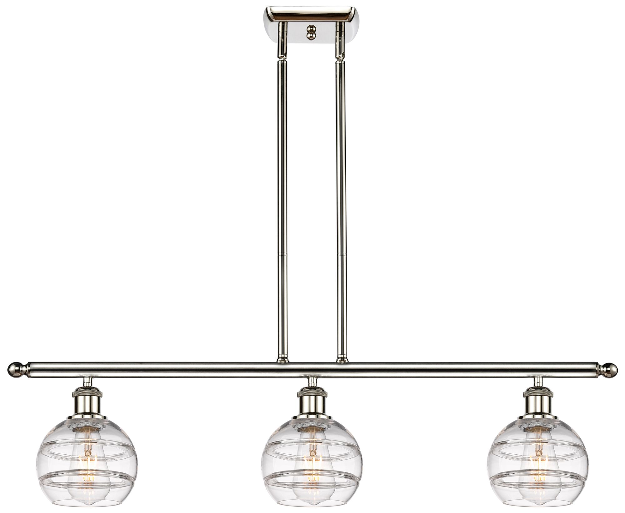 Rochester 36"W 3-Light Polished Nickel Stem Island Light w/ 6" Cl