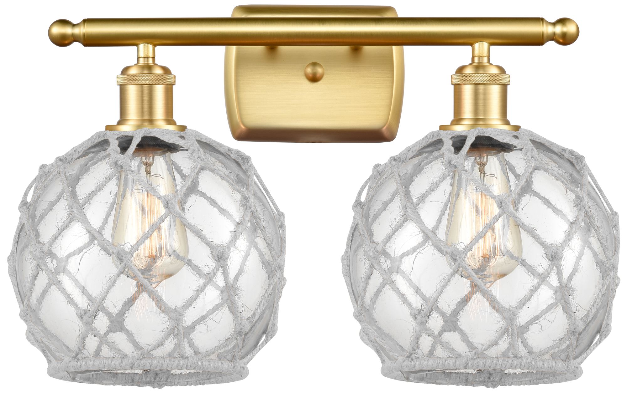 Farmhouse Rope 16"W 2 Light Gold Bath Light w/ Clear and White Rope Sh