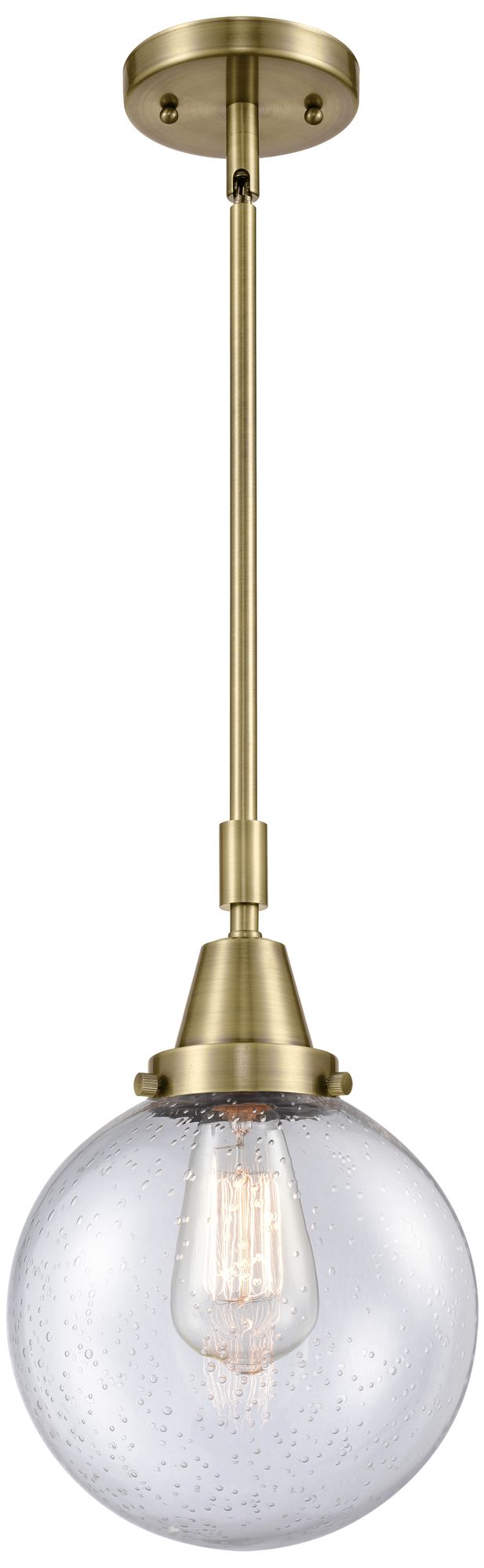 Caden Beacon 8" Wide Antique Brass Stem Hung Mini Pendant w/ Seedy Sha