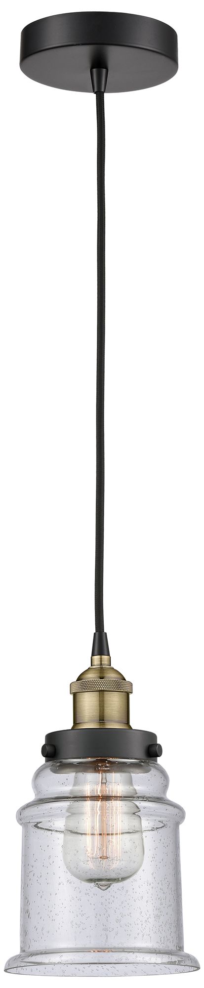 Canton 6" Wide Black Brass Corded Mini Pendant With Seedy Shade