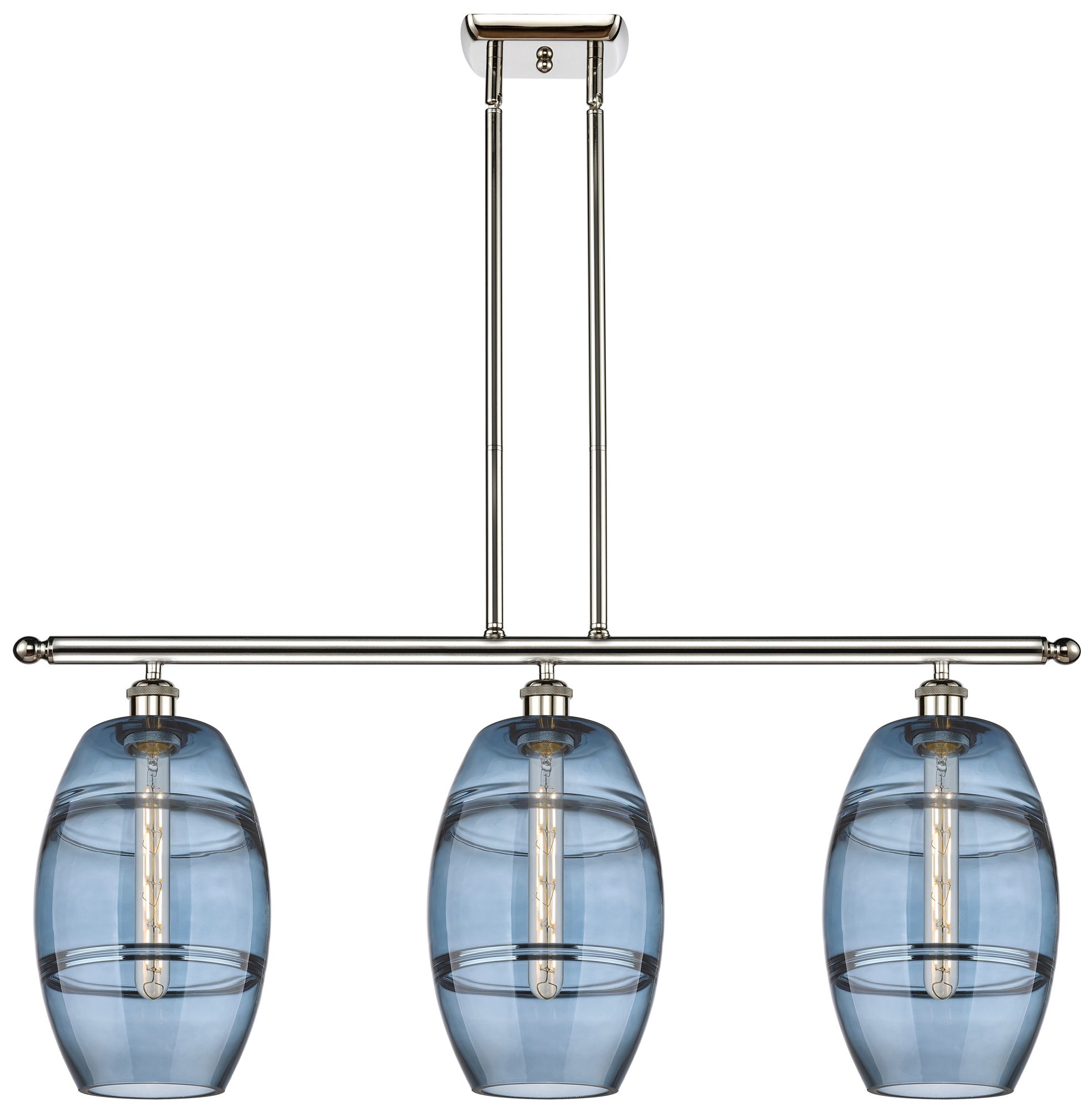 Vaz 36"W 3-Light Polished Nickel Stem Island Light w/ 8" Blue Sha