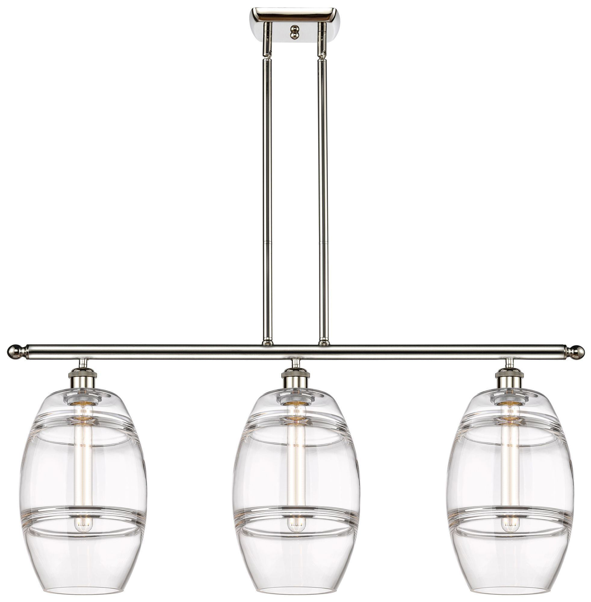 Vaz 36"W 3-Light Polished Nickel Stem Island Light w/ 8" Clear Sh