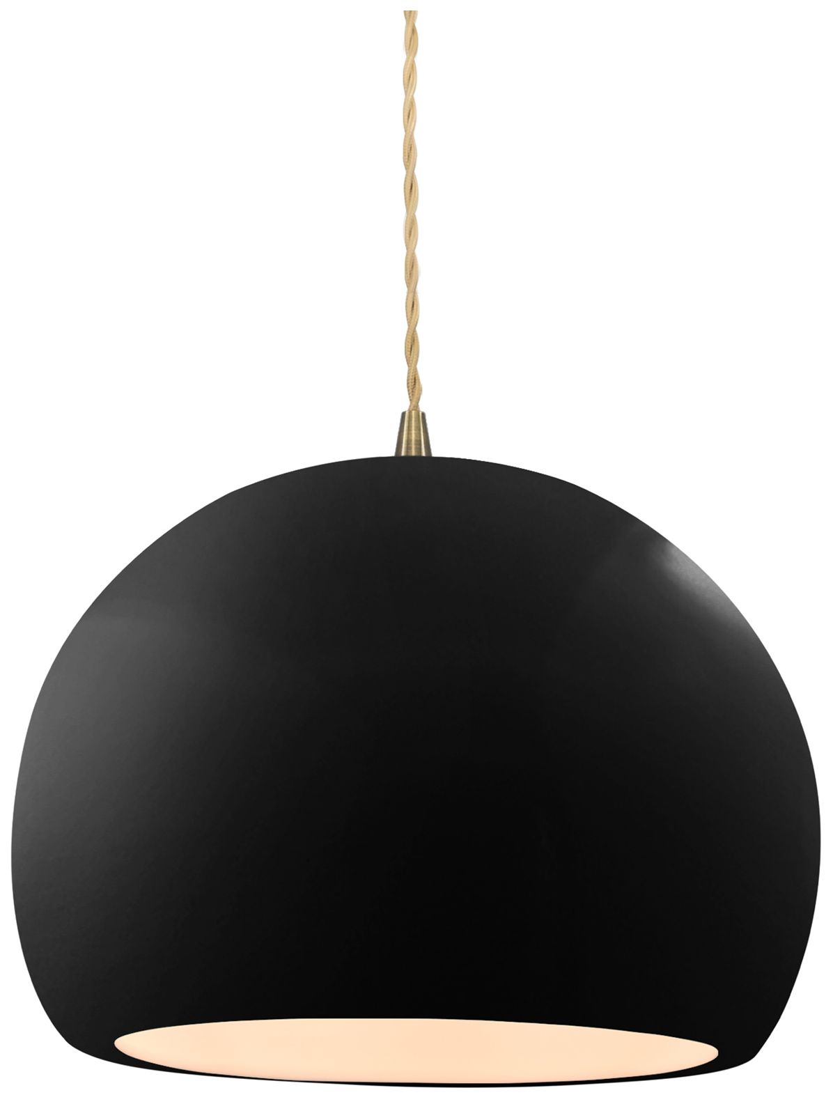 10"W Gloss Black/White Frame Antique Brass Globe Twisted Cord LED Pend