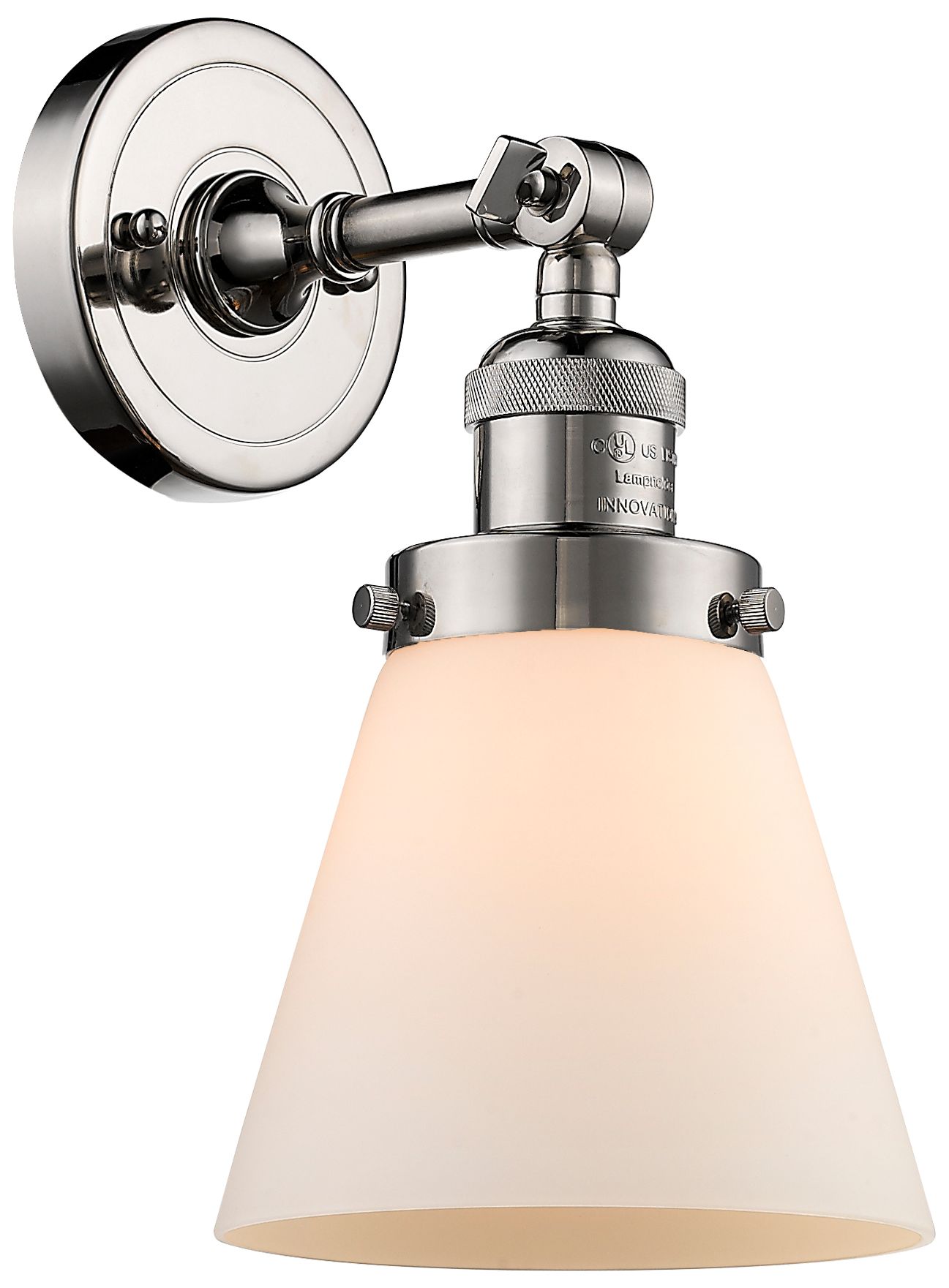 Franklin Restoration Small Cone 6" Polished Nickel Sconce w/ White Sha
