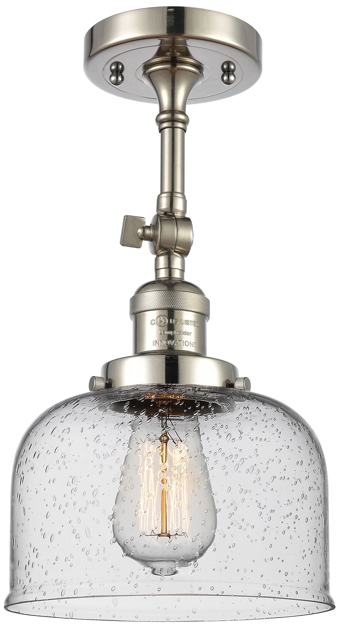 Franklin Restoration Bell 8" Polished Nickel Semi Flush w/ Seedy Shade