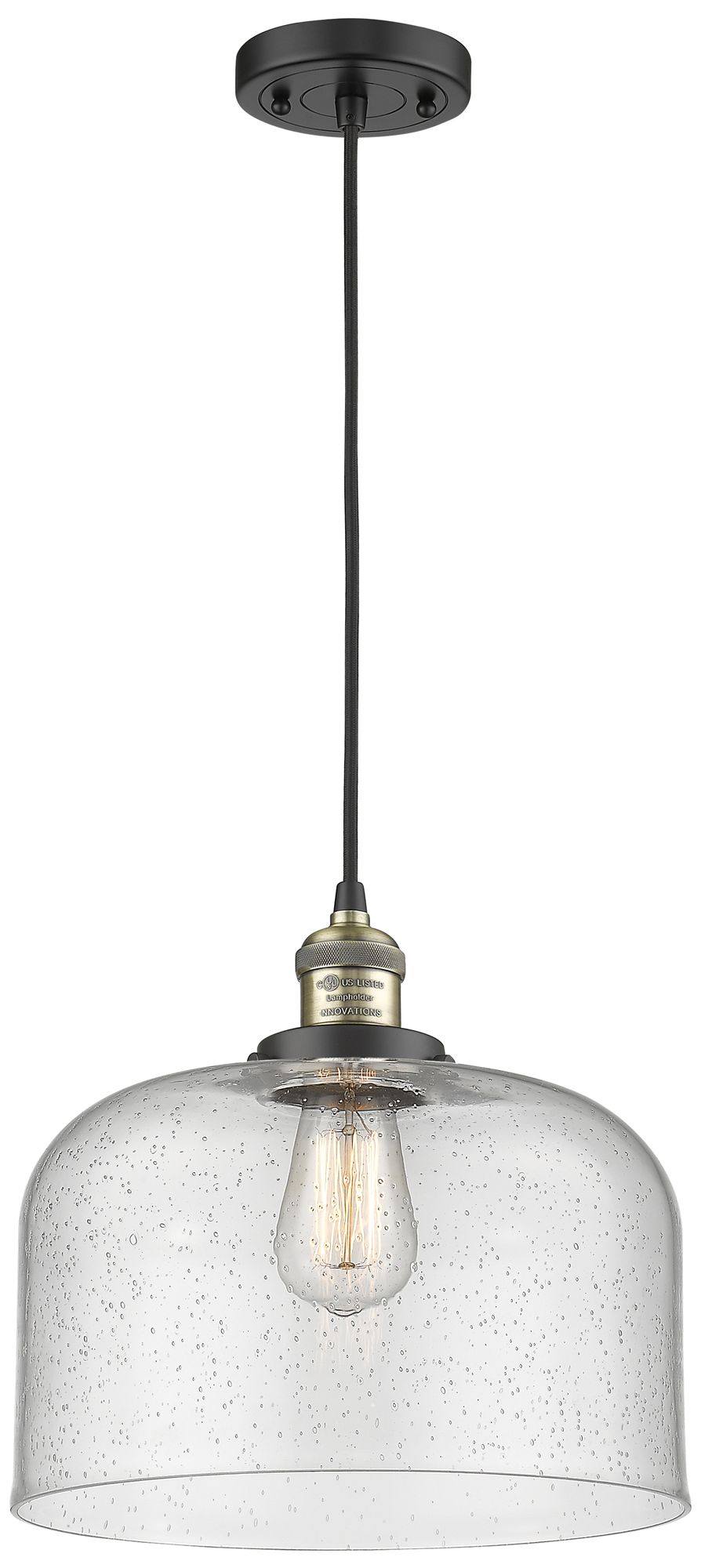 Franklin Restoration Bell 12" LED Mini Pendant - Black Brass - Seedy