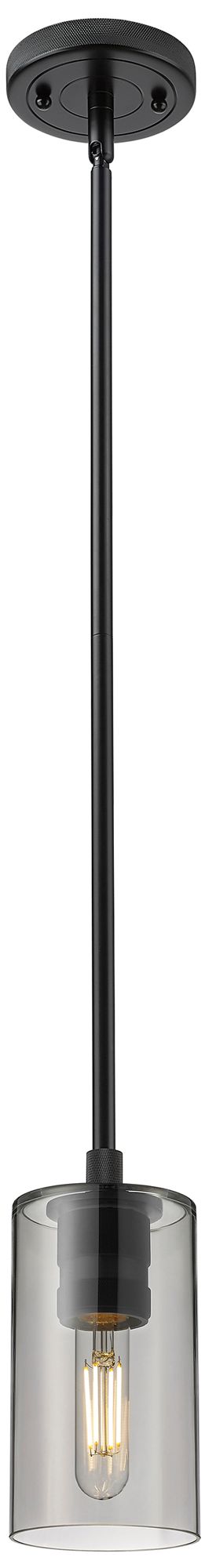 Crown Point 3.88"W Matte Black Stem Hung Pendant With Plated Smoke Sha