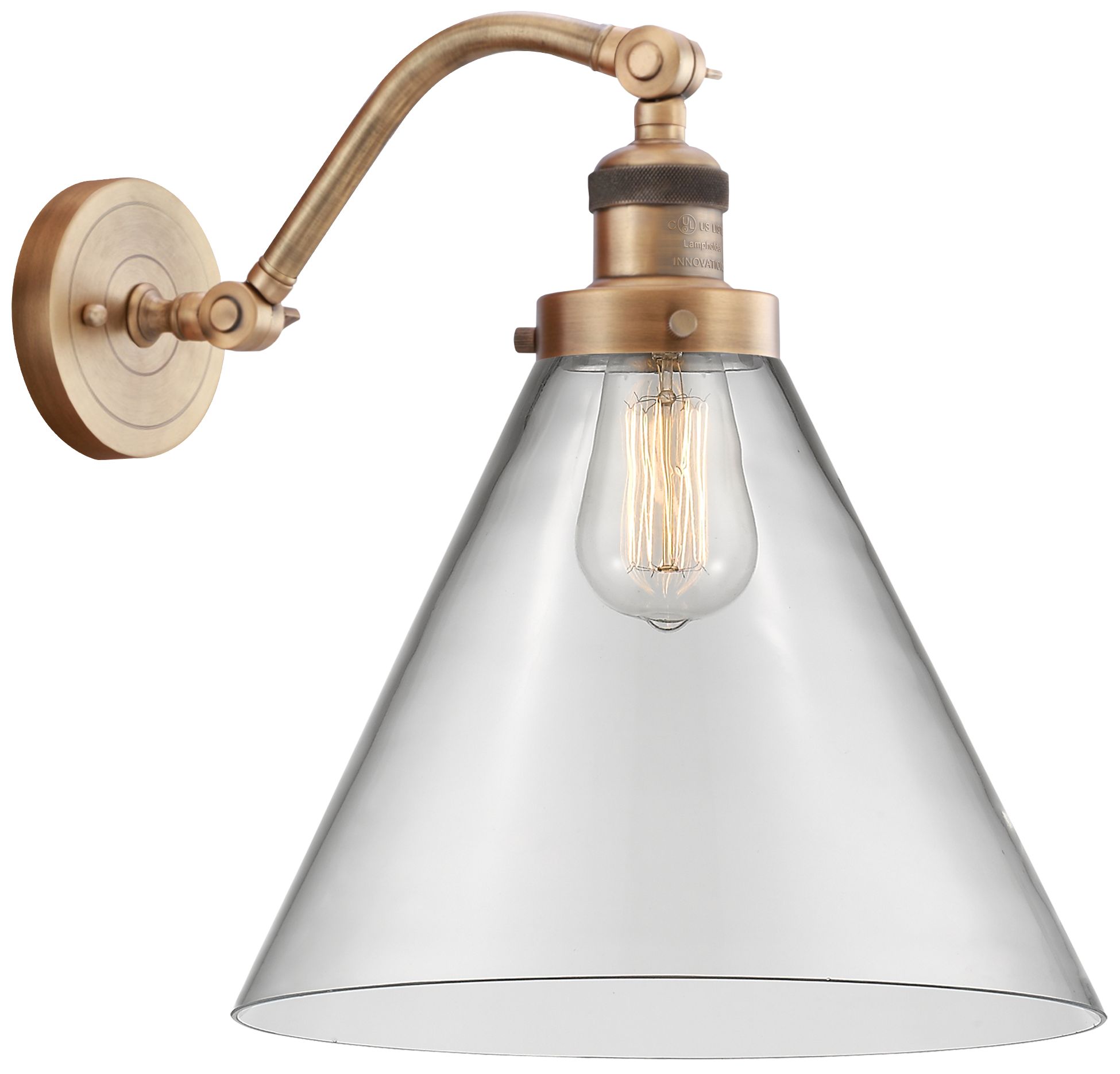 Cone 14" High Brushed Brass Sconce w/ Clear Shade