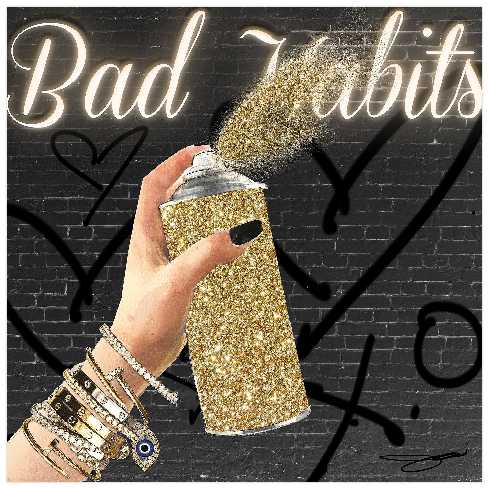 Bad Habits" Frameless Free Floating Tempered Glass Wall Art