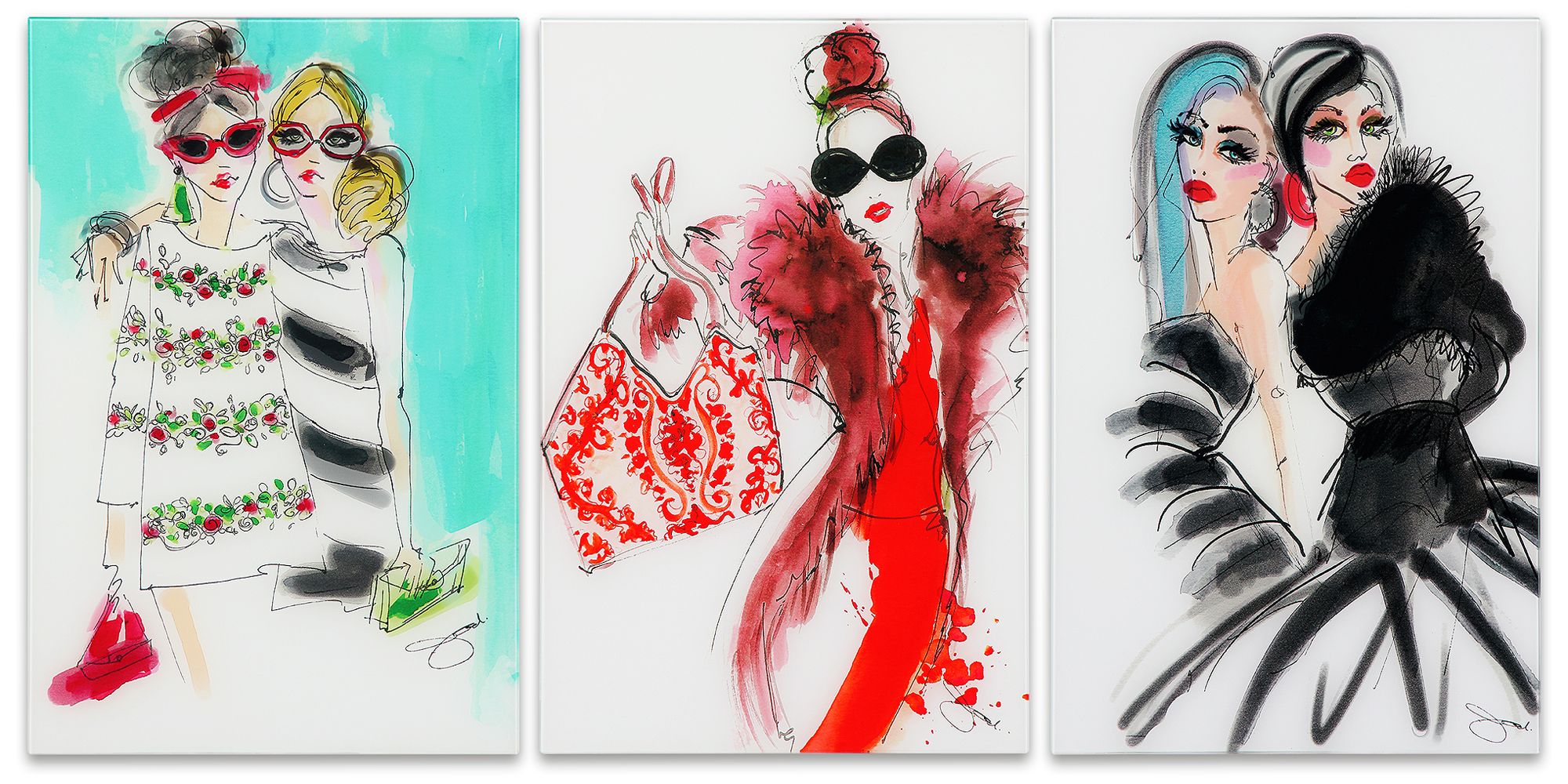 Fashion Show" 3 Piece Frameless Free Floating Tempered Glass Wall Art