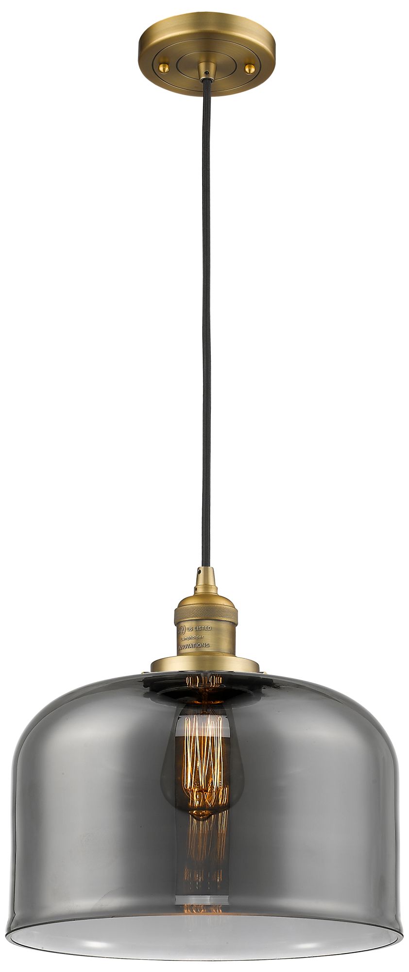 Franklin Restoration Bell 12" LED Mini Pendant - Brass - Plated Smoke