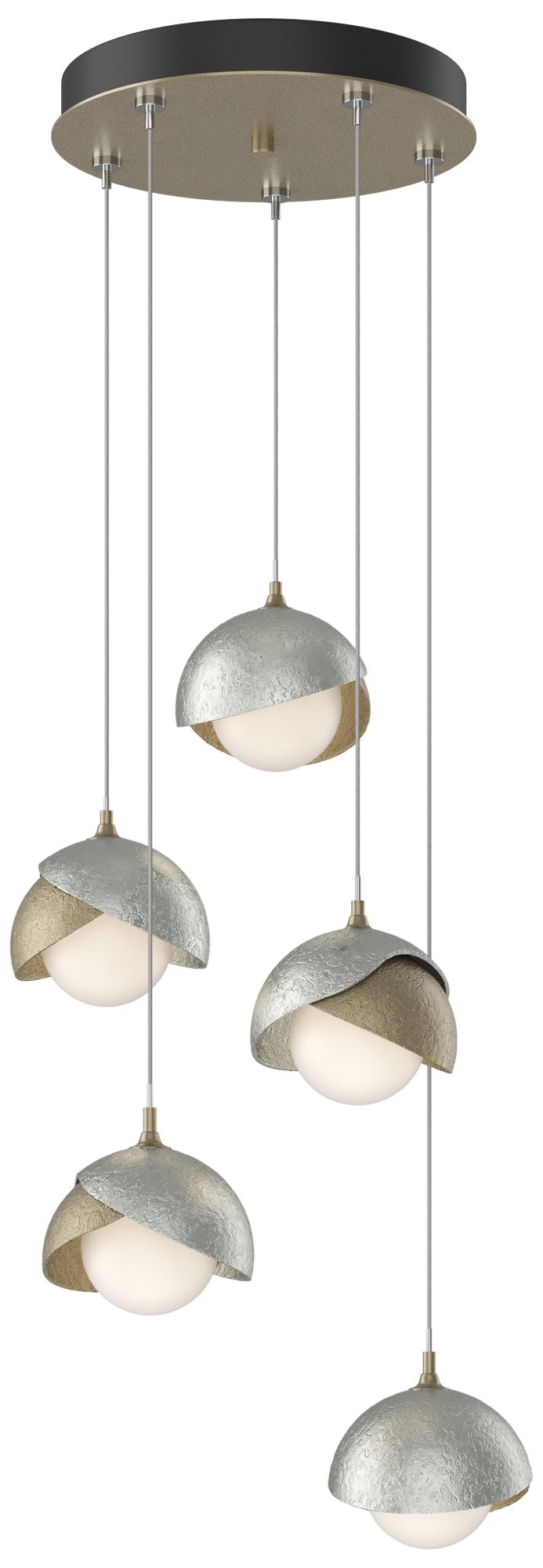 Brooklyn 16"W 5-Light Sterling Accented Soft Gold Long Double Shade Pe