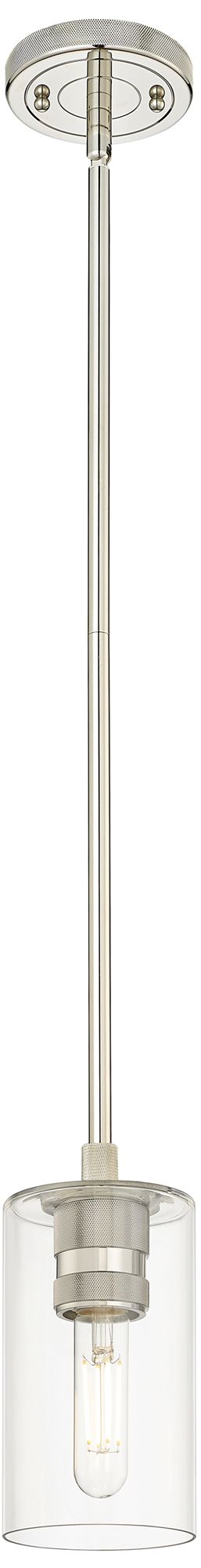 Crown Point 3.88" Wide Polished Nickel Stem Hung Pendant With Clear Sh